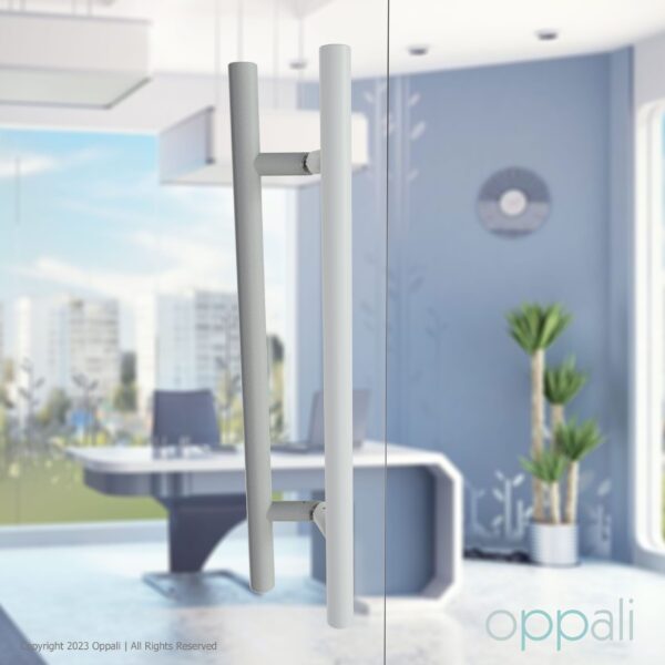 Oppali Λευκό Ματ Ανοξείδωτο Ατσάλι 304 Λαβή πόρτας εισόδου Art.570 | Κλίση υπό γωνία 45° | Στρογγυλή μπάρα T |