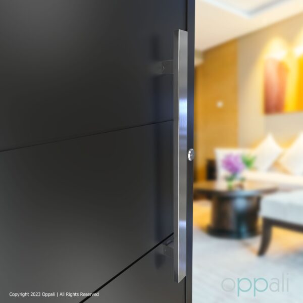 Οι ανοξείδωτες λαβές πόρτας εισόδου Oppali είναι κατάλληλες για ξύλινες, γυάλινες, υαλοβάμβακα και μεταλλικές πόρτες και διατίθενται σε πολλαπλά σχέδια/φινιρίσματα